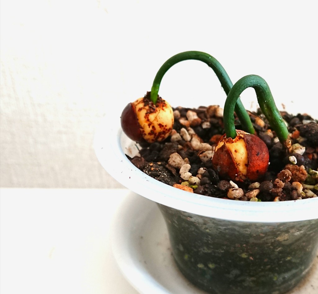 重たい種をグイッと持ち上げて地表に現れる姿は、力強くありながらも、なんともいえない可愛さも感じる姿です。