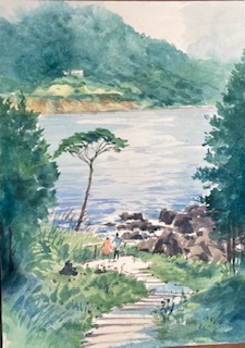 宮城牡鹿半島をのぞむ海の風景を描きました