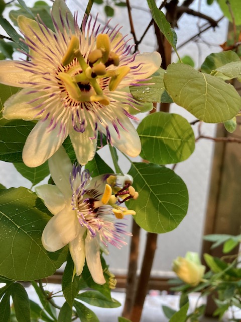 ベランダの時計草が花開いたり それが実になってきたり(パッションフルーツ)