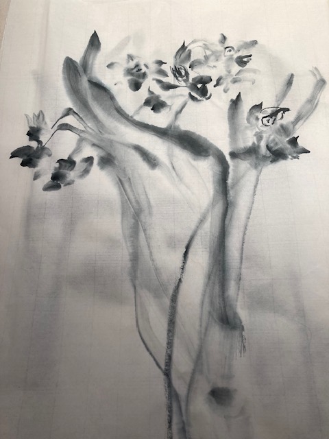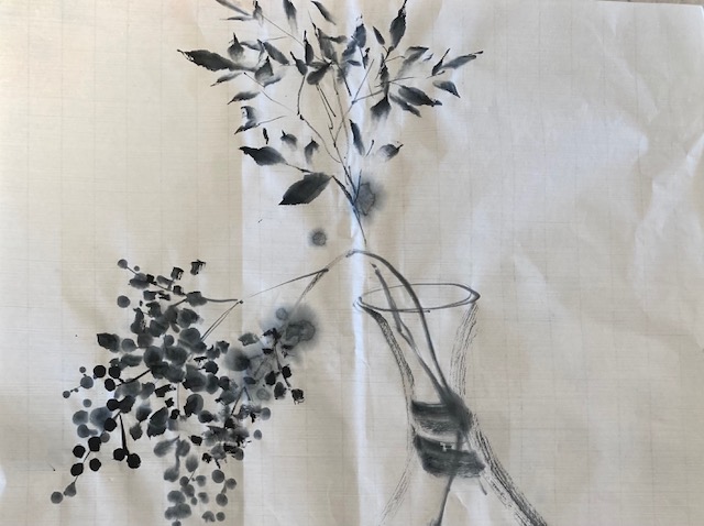 今日は新年はじめての墨画教室、