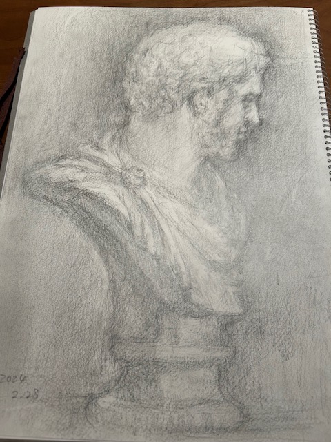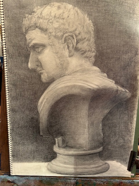 教室には二体の石膏像があります。その他モチーフは果物や野菜など持ち込みもOKです。はじめての方でも先輩方にききながら、 美術室での部活のように、レベルは関係なく絵を描くのが好きな方、新しい春の一歩に!ぜひご参加ください。