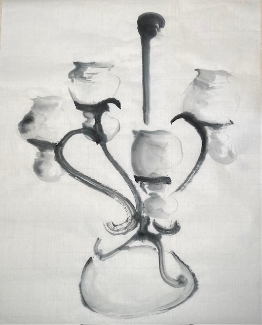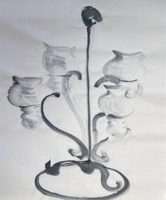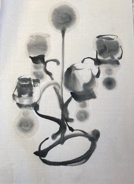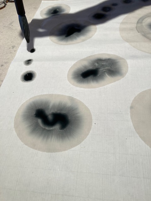 水にのっで墨の粒子が画仙紙を泳ぐようににじみ