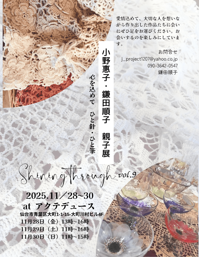 レース編み(母)と硝子絵(娘)の作品をお楽しみに。