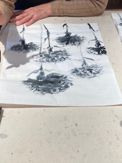 今日の墨画教室では、頂いたお花を愛でながら 墨画に。。。