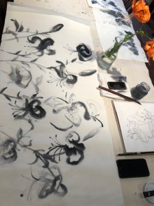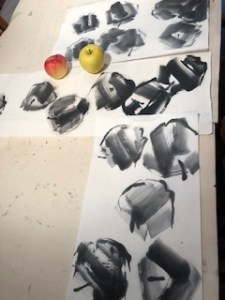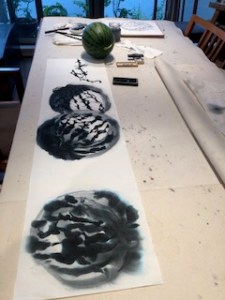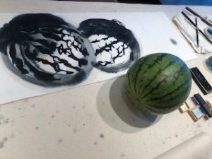 今日の墨画教室は午前午後とみんなで同じものを描いてみました。