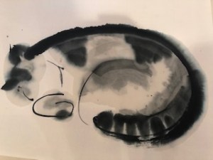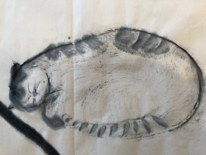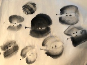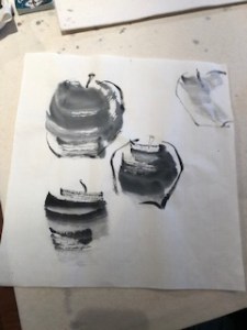 輪郭線に頼らず、立体を伝えるには・・・という墨の使い方をやってみました。