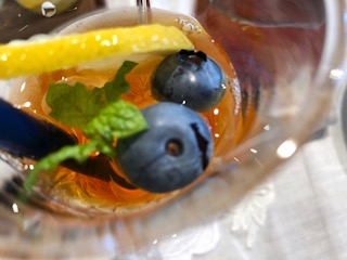 ストレートティーで基本の淹れ方を習ったあと、ミントやシロップ漬けのレモン、ブルーベリーを好みで加え、