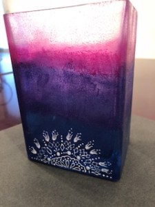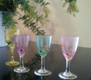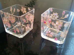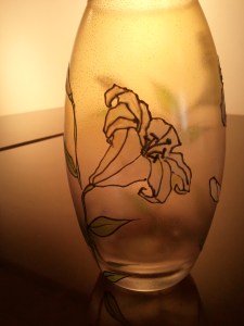 フランスの発色よい特殊絵の具でガラスに描き、