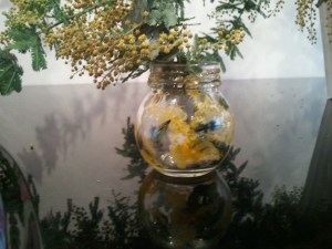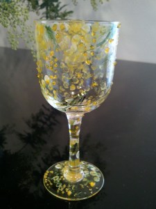 ミモザをモチーフにグラスペイント♪