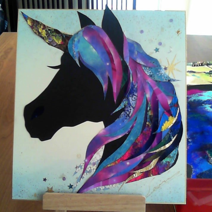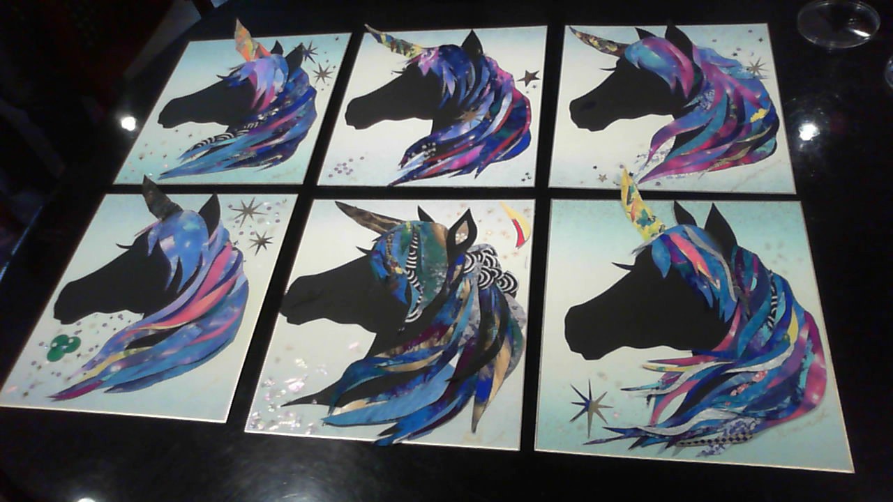 土曜日は村尾沙織さんのコラージュ教室3月は「ユニコーンをコラージュ」