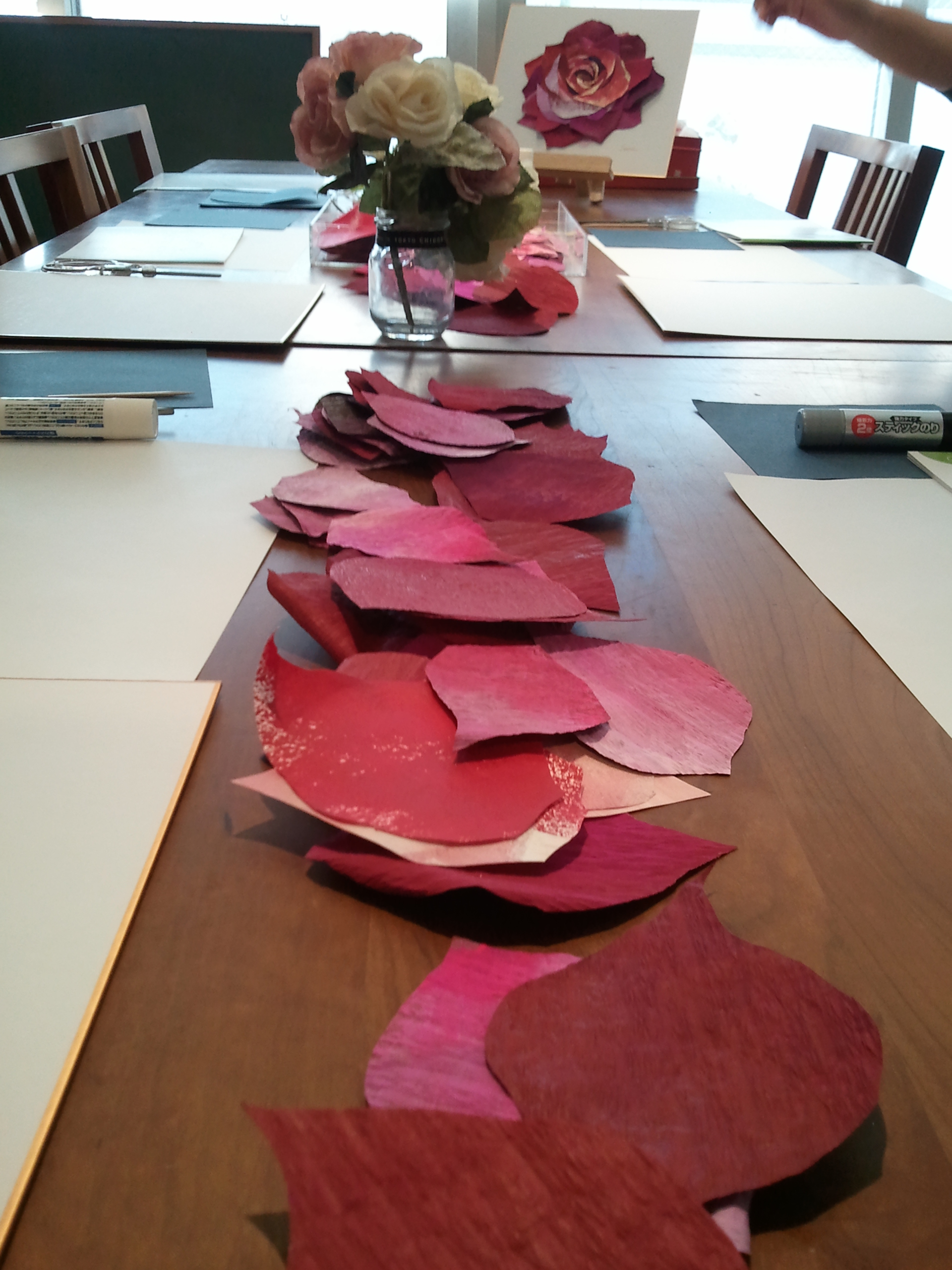 大輪の薔薇を仕上げました。それぞれ違った表情の薔薇に。。。