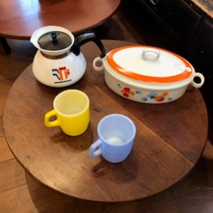 塩竈からは、カフェはれま仕入れの古道具、大正・昭和の品をメインに、煎茶茶碗200円~