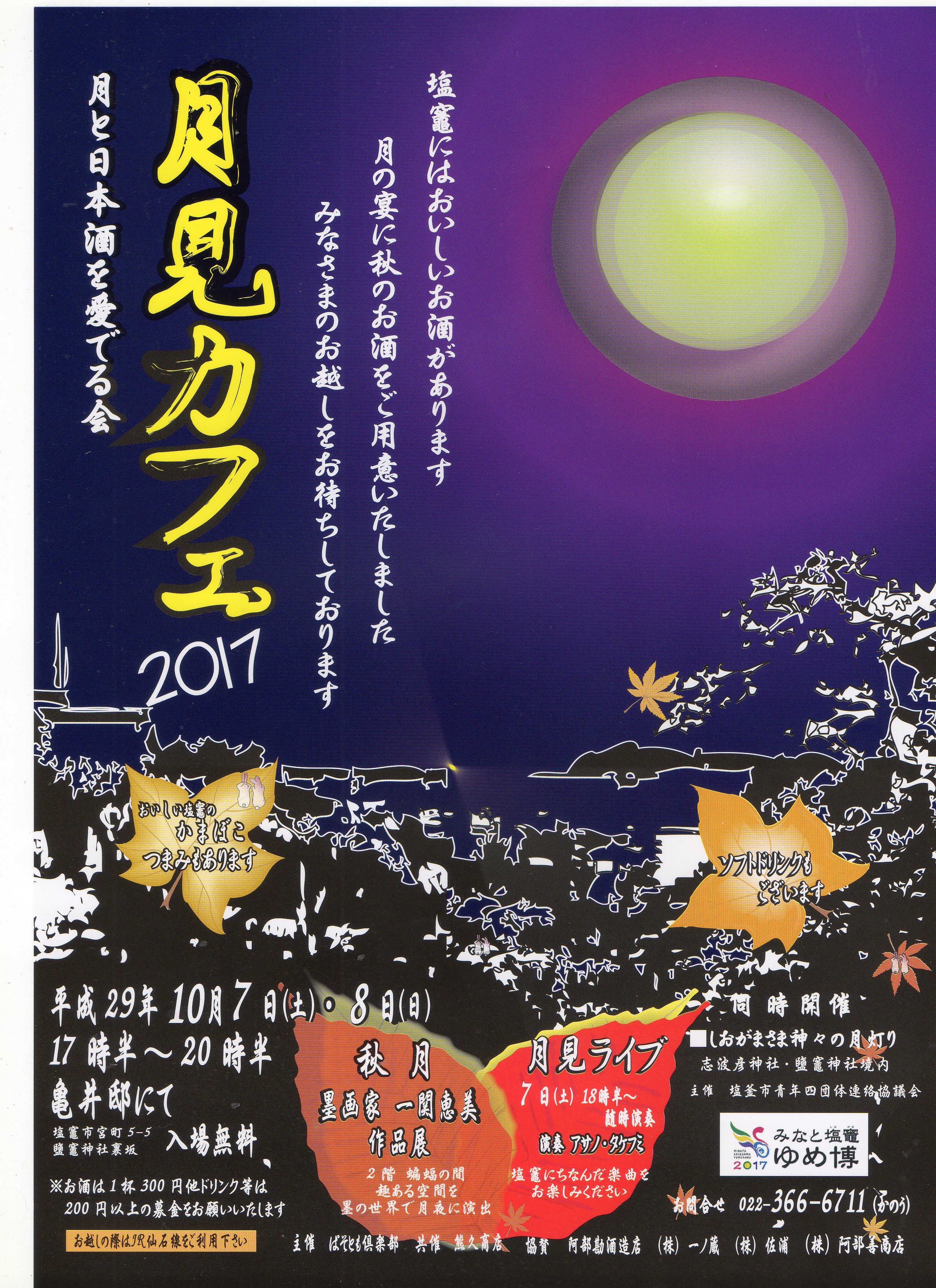 Posts Tagged ‘塩竈亀井邸、月見カフェ、しおがまさま神々の月灯り、日本酒’