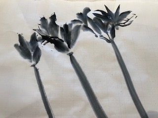 剪定で切り落とした枝をわけて頂き 立派な松をかきました。