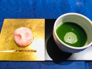 さくらの和菓子でお抹茶をたてていただきました。