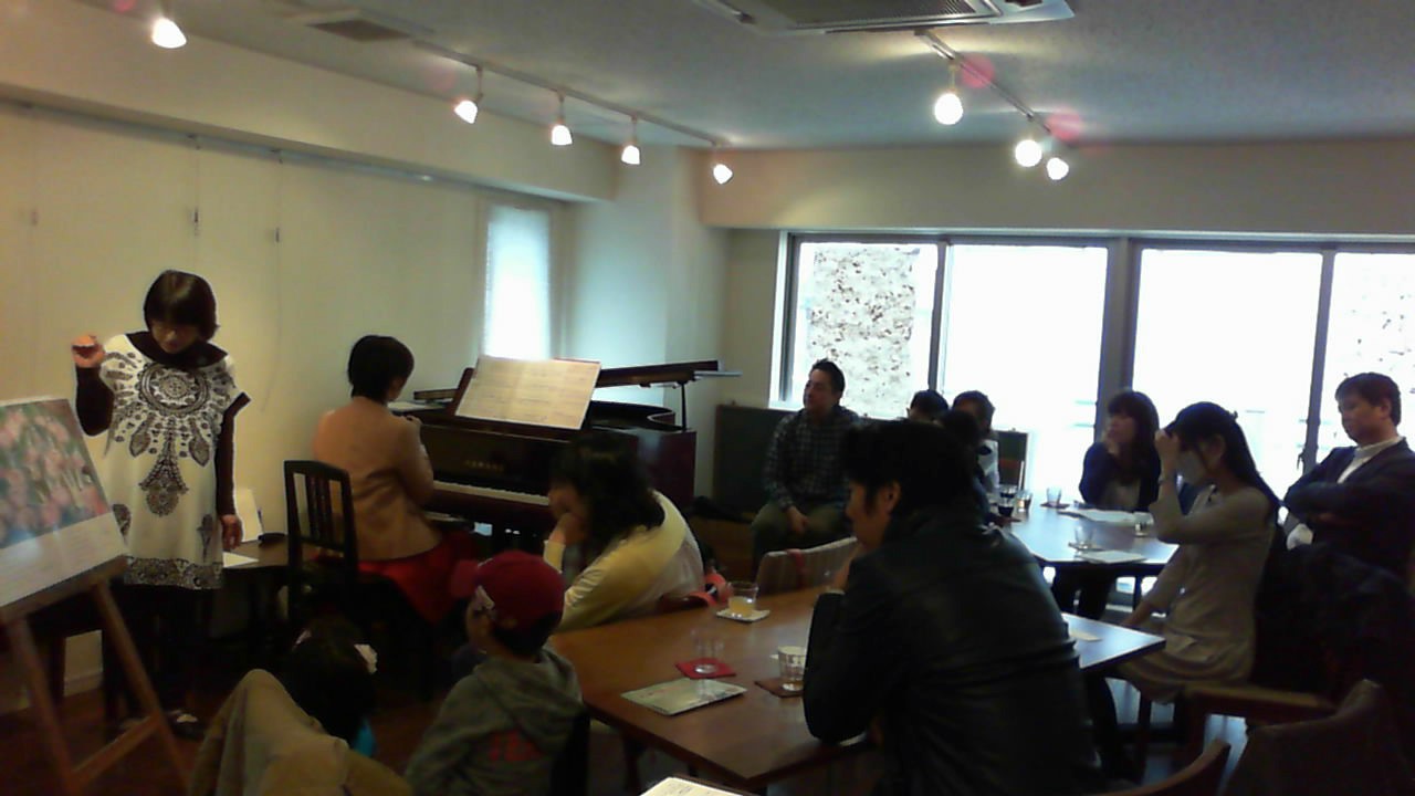 今回は クラシックピアノ曲に春のうたや大型絵本で「うさぎのくれたバレーシューズ」を読んでもらったり、